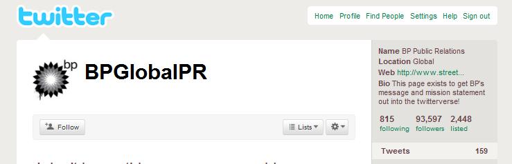 Will @BPGlobalPR be Outed or Out Him or Herself? Of course, there's also the issue that before suing @BPGlobalPR, BP would first have to find out who is behind the account. That could turn into its own separate dispute that could have an effect on how BP proceeds. Another interesting issue is when and whether @BPGlobalPR will be outed or will out him/herself. There were rumblings of this last week ("Fake BP Account Remains Shrouded in Mystery"). I predict that the person will voluntarily disclose his or her identity or be outed by June 15, 2010. (As a side note, if you run this account, there's no way you could not have told your closest confidants. So far, they're doing a good job of not blowing your cover.)