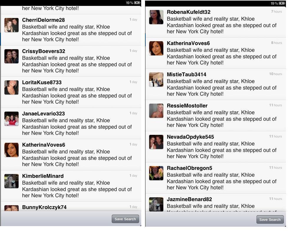 If there's ever a "what has my life come to" moment, searching on Twitter for "Kardashian" has got to be high (or low) on the list. Anyway, I found myself doing a search on Twitter for Kardashian, and I was surprised that I saw a few tweets coming from different people that had no links, but the exact same text. I did a search for the exact text and was surprised by what I saw: