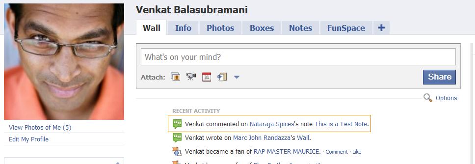 Here's the scenario: I have a personal page on Facebook which I've had for the past year or so (give or take). About six months ago I decided to set up a "company page" for a side-project I'm working on with my mom (selling Indian spice mixes and rubs). Here's a link to the spice mix page. (At the risk of sounding trite, and to use an over-used expression, "feel free to fan" the spice rub page [link].) The basic problem I have is that Facebook does not make it easy to disassociate my personal page from the company page. My recollection when I set up the company page was that you had to tie it to a personal page for the person who would be the administrator. This was a lame decision on Facebook's part. Maybe people want to set up a company page but they don't want to be "on Facebook" (personally)? Anyway, that's neither here nor there, but what I'm really having trouble figuring out is how to easily distinguish between posting to your personal page and and posting to the company page.